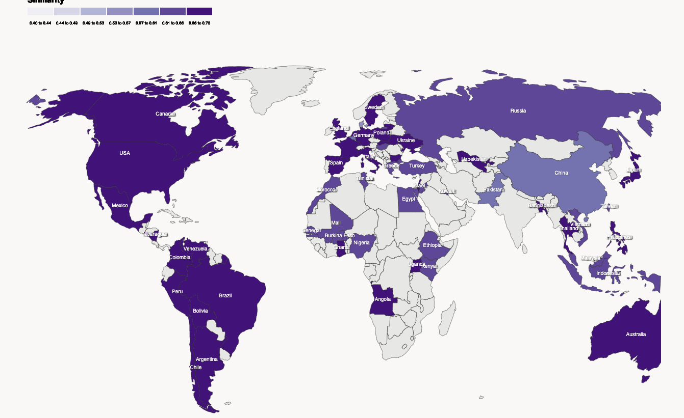 Anthropic GlobalOpinionQA tries to compare quantitatively the differences in opinions across the world.